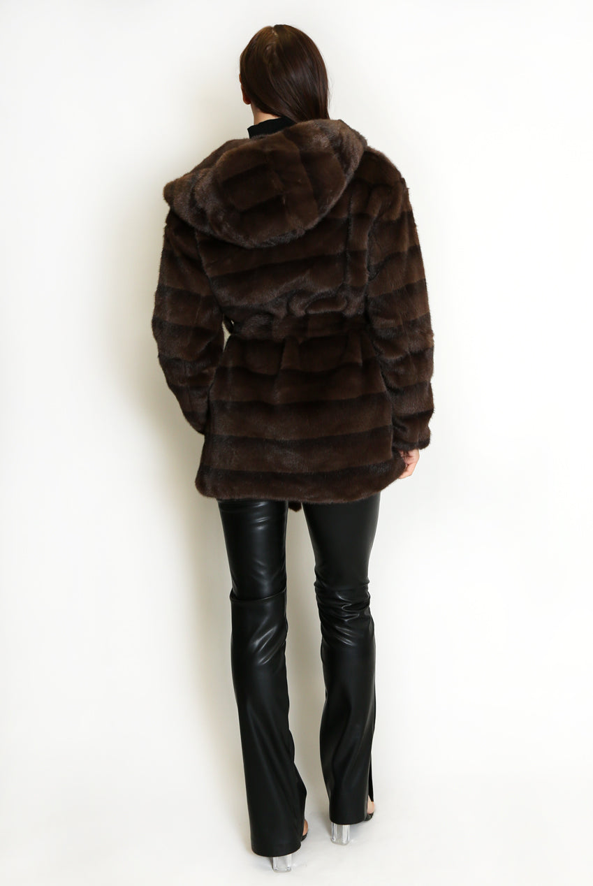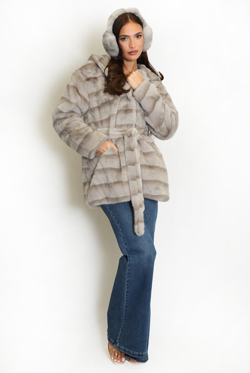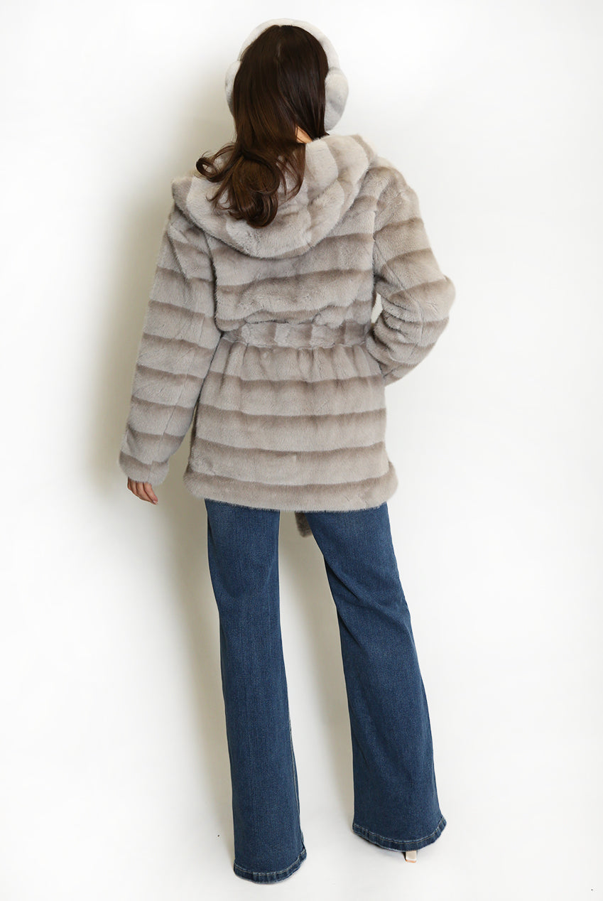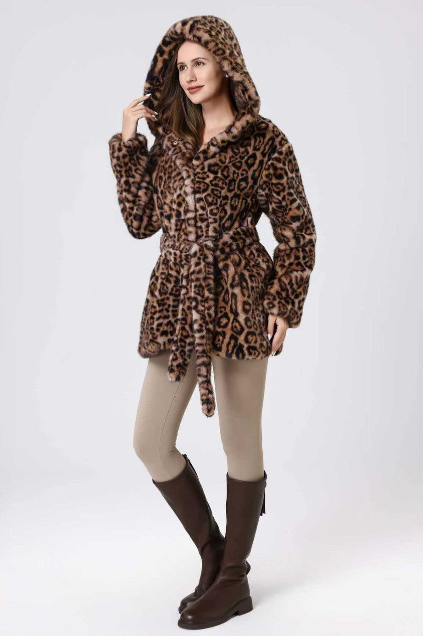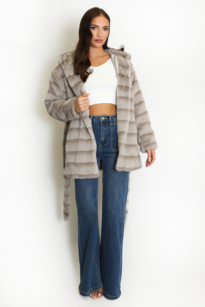 Faux Fur Belted Hooded Coat