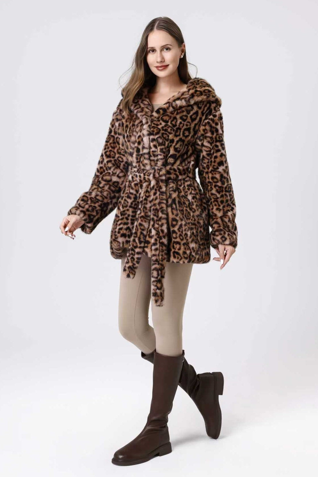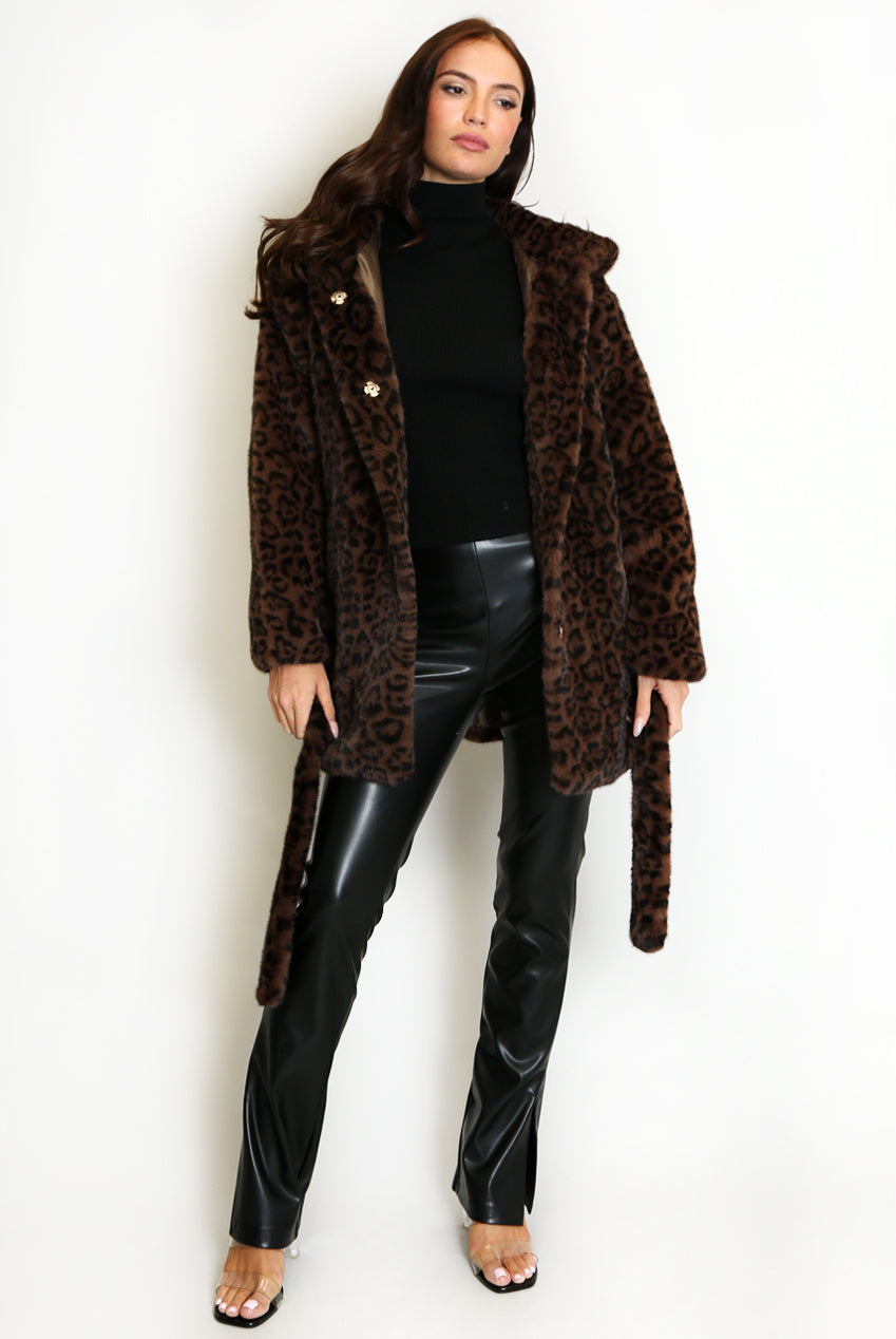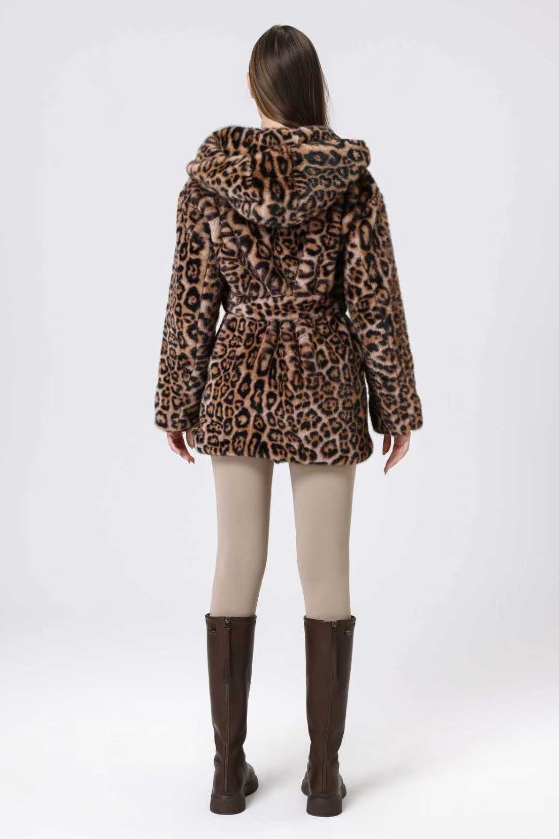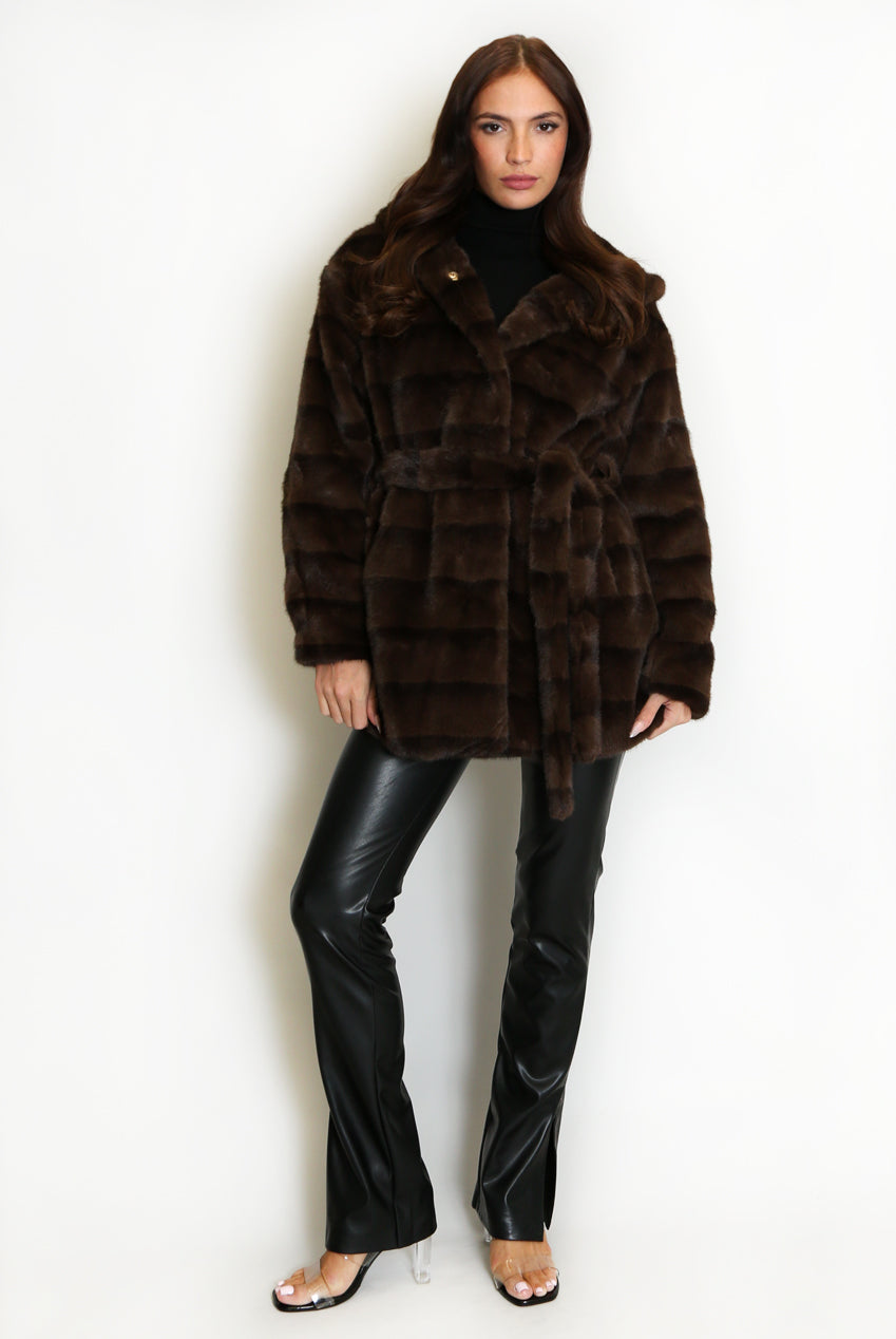 Faux Fur Belted Hooded Coat